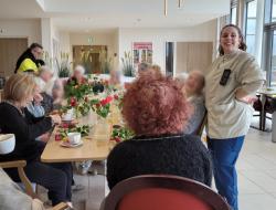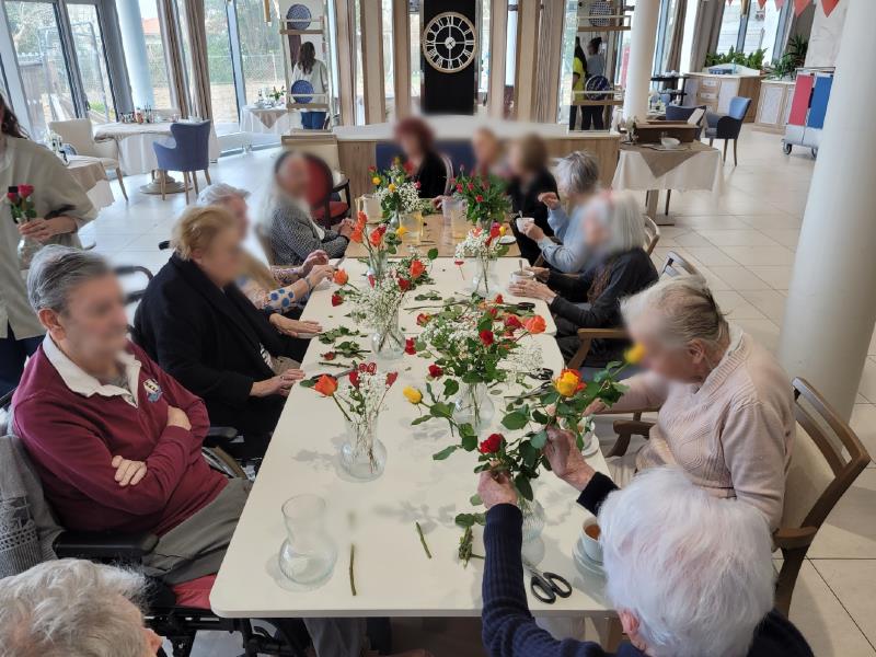 Pour la Saint-Valentin, nos résidents ont préparé avec notre animateur et notre ergothérapeute des bouquets de fleurs afin de décorer les tables de la salle de restauration.