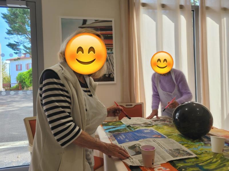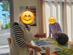 Afin d'accueillir les enfants du centre de loisir dans notre résidence pour la fête d'Halloween, nos résidents et notre animateur conçoivent ensemble plusieurs piñatas représentant de terrifiantes citrouilles !