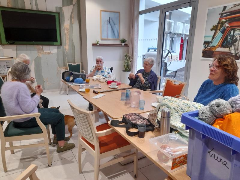 Nos deux animations du lundi, en début d’après midi nos tricoteuses étaient au rendez vous, en deuxième partie nous avons commencer à décorer notre salle à manger pour la fête d’Halloween.