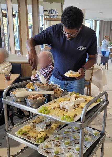 Afin de célébrer la journée nationale du fromage, notre animateur a proposé à nos résidents une dégustation de différents fromages lors de l'apéritif du vendredi 27 Mars.