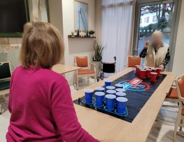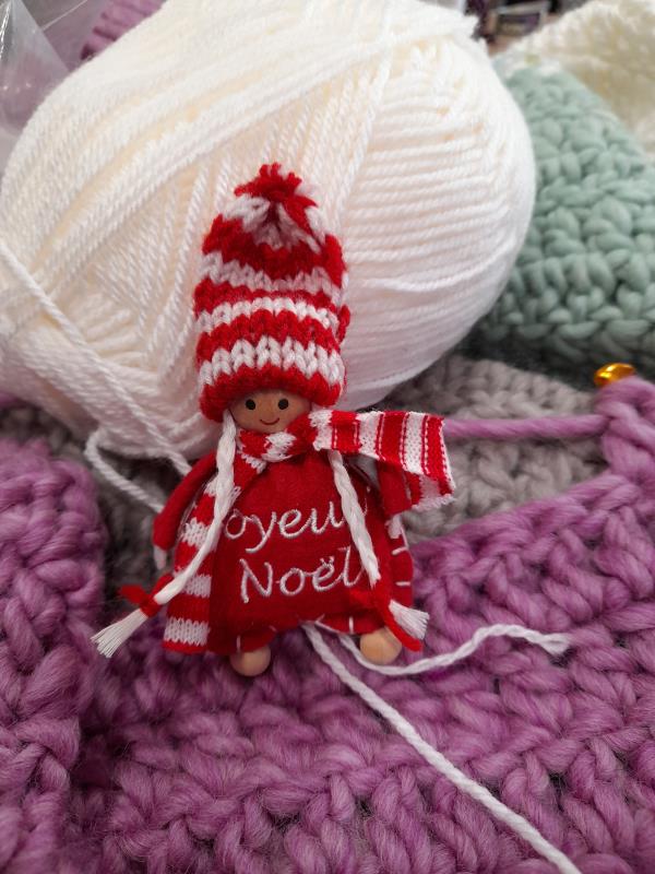 Petite photo d'une résidente qui à effectué cette figurine pour ses trois petites filles. Découpage de feutrine, le bonnet et l'écharpe au tricot.