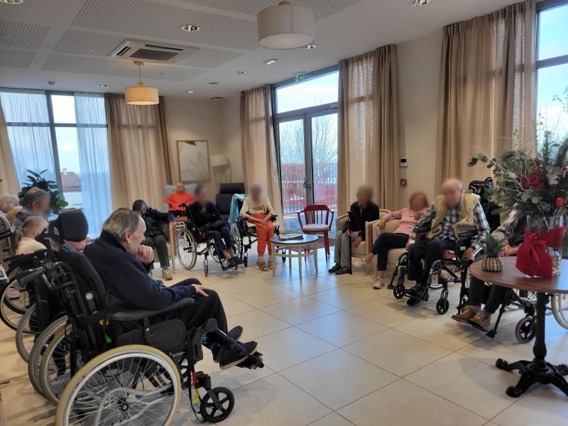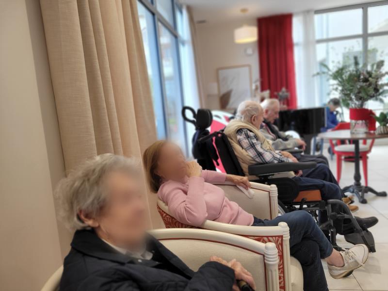 Chaque matin, nos résidents se réunissent au salon du piano situé au rez-de-chaussée et notre animateur leur partage les nouvelles de la semaine en leur lisant le journal du Sud-Ouest et l'actualité disponible sur internet.