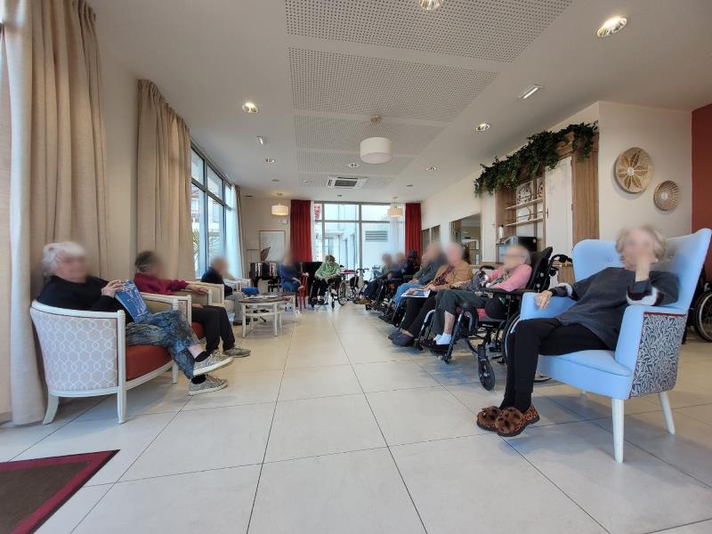 Résidence Eskualduna > Actualités > Lecture du journal Lecture du journal Publiée le 10/02/2026 Chaque matin, notre animateur et nos résidents se réunissent au salon du piano situé au rez-de-chaussée pour la lecture du journal.
