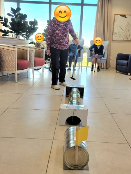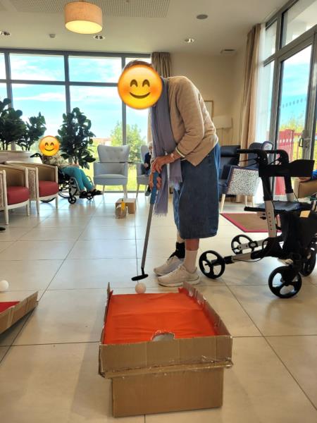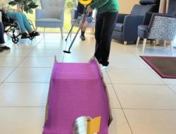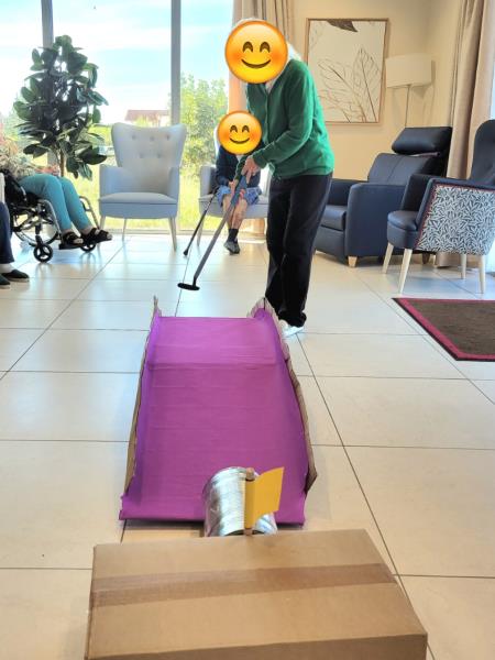 Ce mercredi 24 Septembre, nos résidents ont pu tester leur parcours de mini-golf. Celui-ci a été réalisé par leurs soins, avec l'aide de notre animateur, à partir de matériaux de récupération !