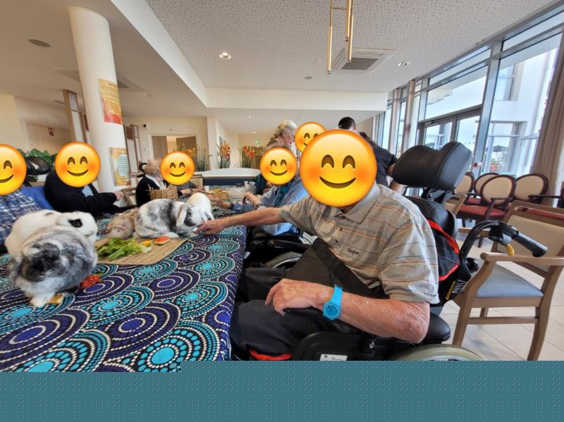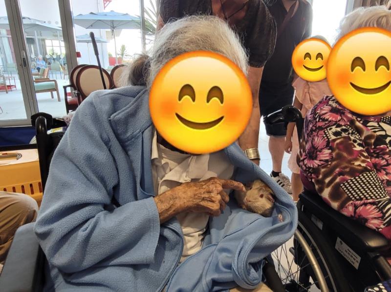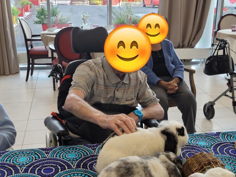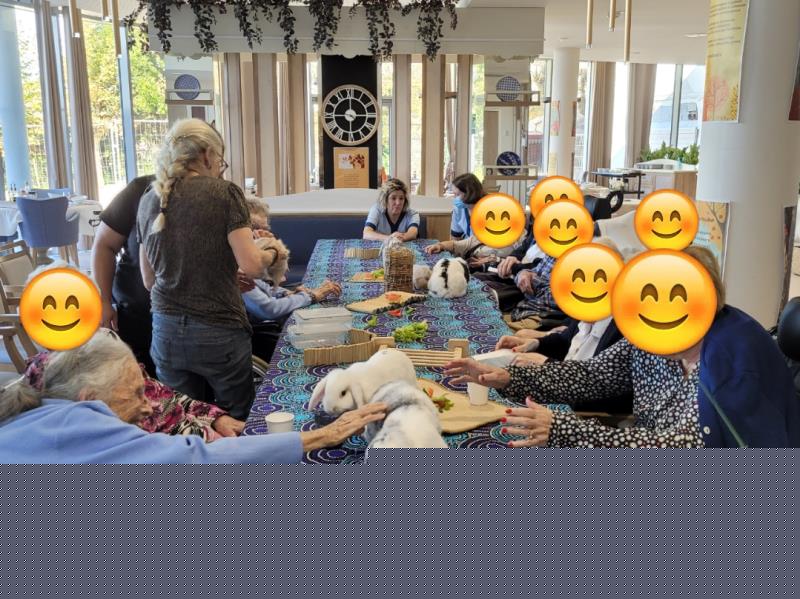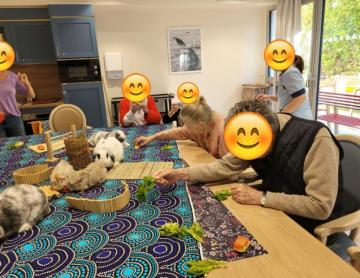 En Octobre, nos séniors ont pu avoir l’opportunité d'interagir une nouvelle fois avec les nombreux animaux de la médiation animale en les câlinant et en leur donnant à manger grâce au passage de Christine !