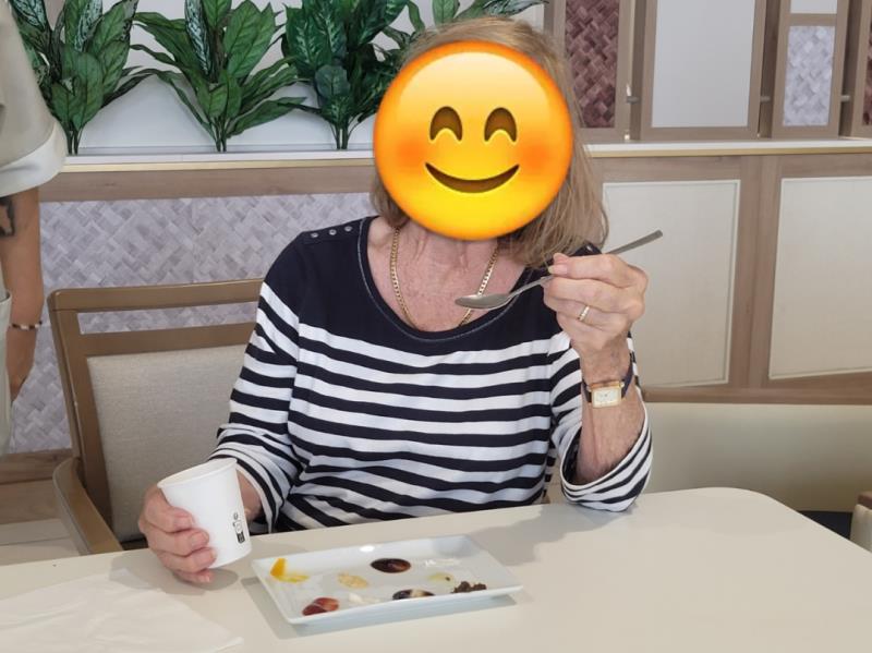 Lors de la semaine du goût, nos résidents se sont amusés à identifier les différents aliments que nous leurs avons proposé tels que le vinaigre balsamique, la tapenade aux olives noires, le nappage au caramel, le coulis de framboise, le coulis de fraise, le coulis de fruits exotiques, le coulis de mangue, la purée d'ail, le lait concentré, le yaourt au goût citron, le yaourt au goût vanille et la crème de pistache.