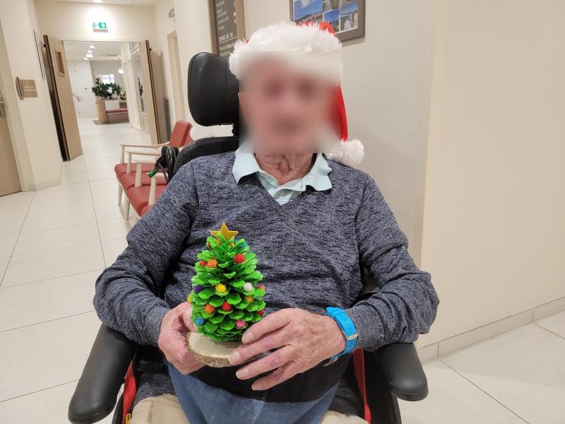 Cette semaine, notre animateur a pris nos résidents en photo en habits de Noël, avec leurs réalisations, afin de garder quelques souvenirs de cette période de fêtes !