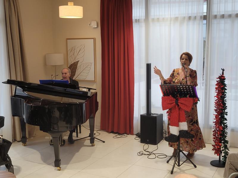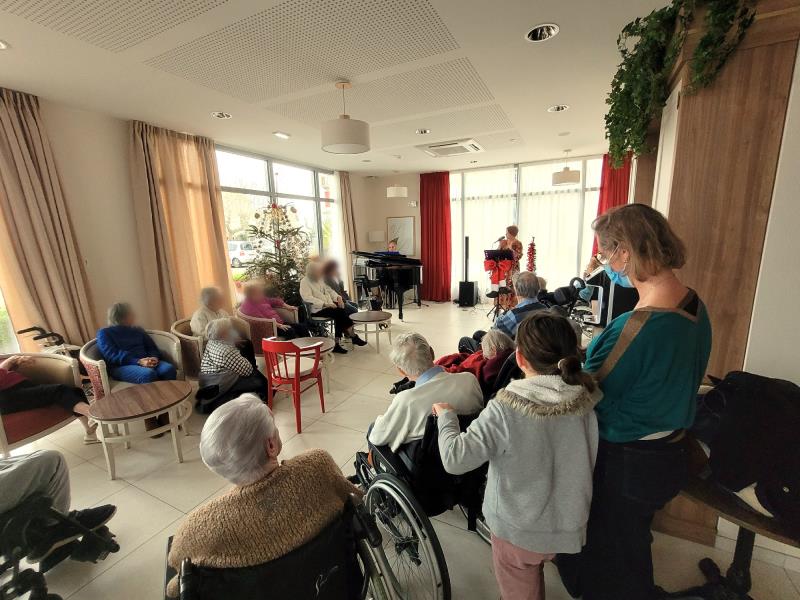 Pour fêter le passage à la nouvelle année, notre résidence a accueilli un duo d'artistes : Mlle Anne PAUMIER, notre ancienne animatrice reconvertie dans le chant, et Mr Daniel SUBRECHICHOT, pianiste à l'Hôtel du Palais de Biarritz.