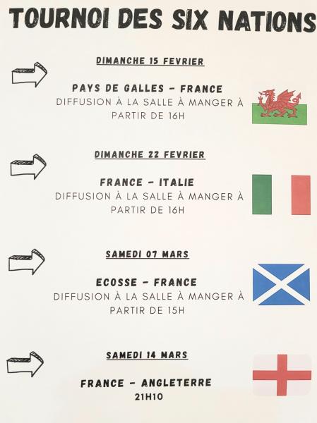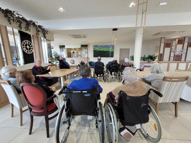 Ce samedi 7 Mars à l'occasion du tournoi des six nations opposant l’Écosse à la France, notre animateur a convié nos ainés à suivre ensemble le match sur le grand écran de télévision de notre salle à manger.