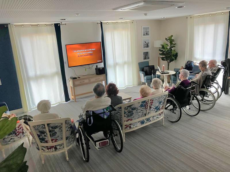 A 15h, Mlle Anne est intervenue avec un premier groupe de résidents pour un atelier de chant au salon ITSASOA du premier étage.